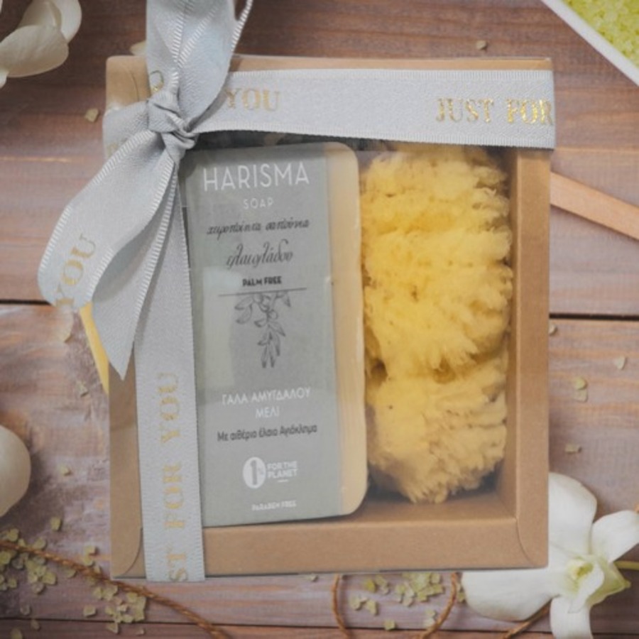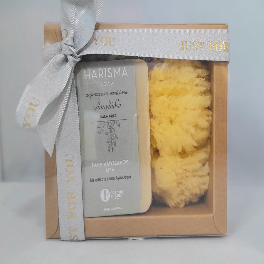 Harismasoap 1 ΣΑΠΟΥΝΙ + 1 ΦΥΣΙΚΟ ΣΦΟΥΓΓΑΡΙ ΚΑΛΥΜΝΟΥ ΓΡΑΔΑ ΣΕ ΧΑΡΤΙΝΟ ΚΟΥΤΙ ΜΕ ΔΙΑΦΑΝΟ ΚΑΠΑΚΙ