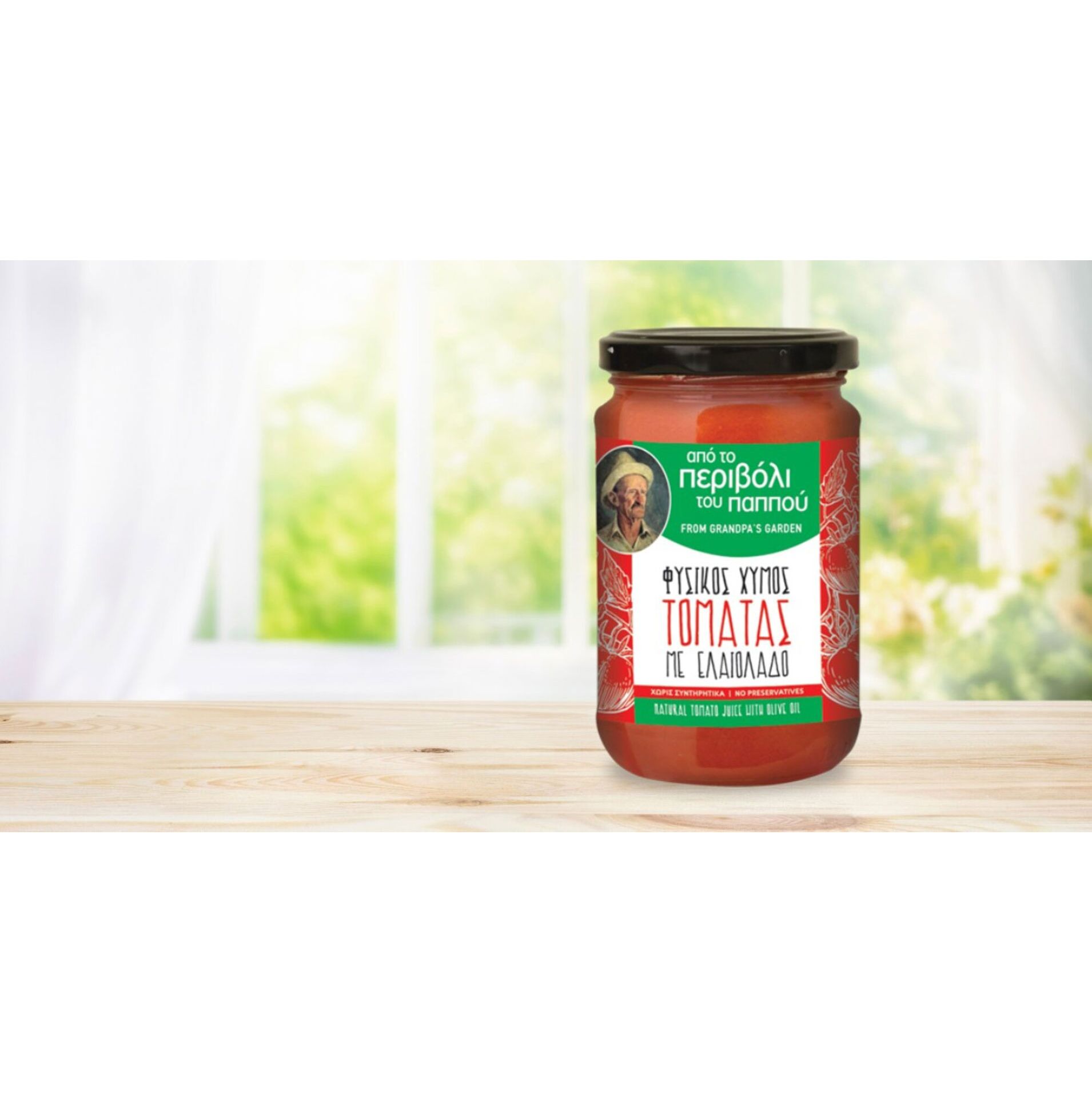 Χυμός από Ελληνικές τομάτες εποχής που συντηρείται με φυσικό τρόπο και δίνει τη δυνατότητα να τον απολαύσετε καθ’ όλη τη διάρκεια του χρόνου, χωρίς την προσθήκη συντηρητικών και χρωστικών ουσιών.